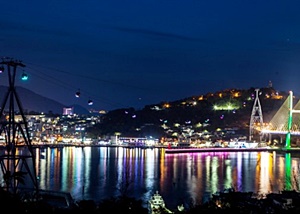 여수 해상케이블카는 돌산과 자산공원을 연결하고 바다를 통해 섬과 육지를 연결하는 총 길이 1.5km의 국내 최초 해상케이블카 이에요. 투명한 바닥으로 된 크리스탈 캐빈 15대와 일반 캐빈 35개 등 총 50개가 운행되고 있으며, 박람회장과 오동도를 중심으로 다도해의 전망과 여수 밤바다를 한눈에 조망할 수 있어요. 다도해의 뻥 뚤린 전망과 박람회장과 오동도의 풍경을 즐길 수 있어요. 이용요금은 왕복이나 편도 여부, 소인 또는 대인 여부에 따라서 6천~2만2천원이에요.