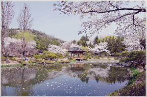 경주 가볼만한곳 베스트10 중 세 번째인 보문정은 한때 CNN에서 "한국의 비경"이라고 소개한 적이 있을 만큼 아름다운 곳입니다. 팔각정과 두 연못 주변에 심어진 벚꽃과 단풍나무는 계절에 상관없이 언제나 봐도 아름다운 곳이에요. 봄에는 보문정 주변에 하얀 벚꽃이 만발해 장관을 이뤄요.